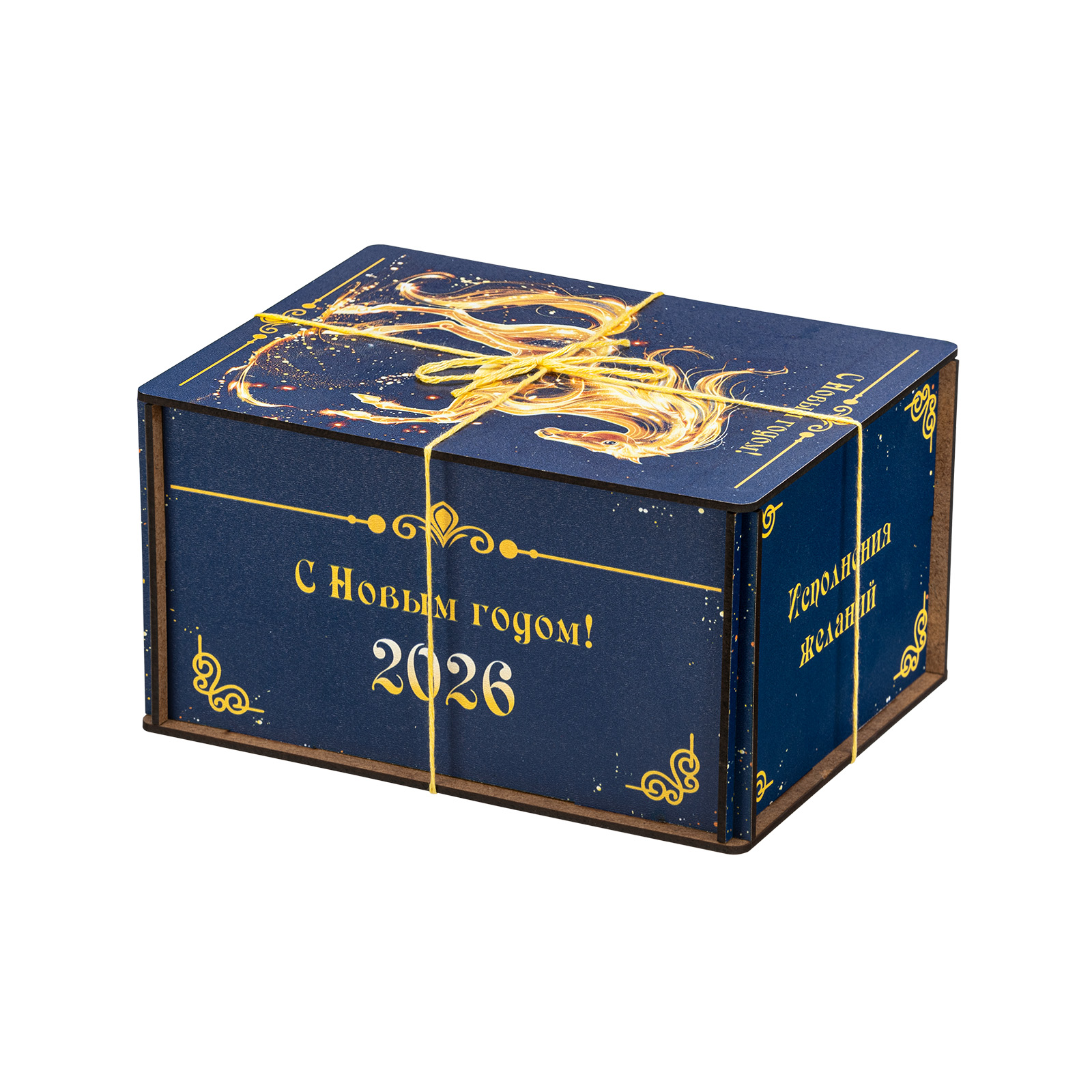 Креативный подарочный набор, который одинаково удачно подойдет как для поздравления подростка, так и для совсем взрослого сластены. Этот подарок представляет собой темно-синий деревянный ящичек, перевязанный контрастной золотой веревочкой. Со всех сторон упаковка украшена поздравительными надписями, а на крышке гордо красуется изображение символа наступающего года - грациозного золотистого коня. В состав подарка входит килограмм самых разнообразных сладостей: батончики, суфле, шоколадные конфеты с начинками на любой вкус - а также небольшой памятный сувенир в виде символа года. Этот подарок можно вручить как на новогоднем мероприятии в школе, так и на корпоративе в крупной компании. Такой презент уж точно придется по душе!