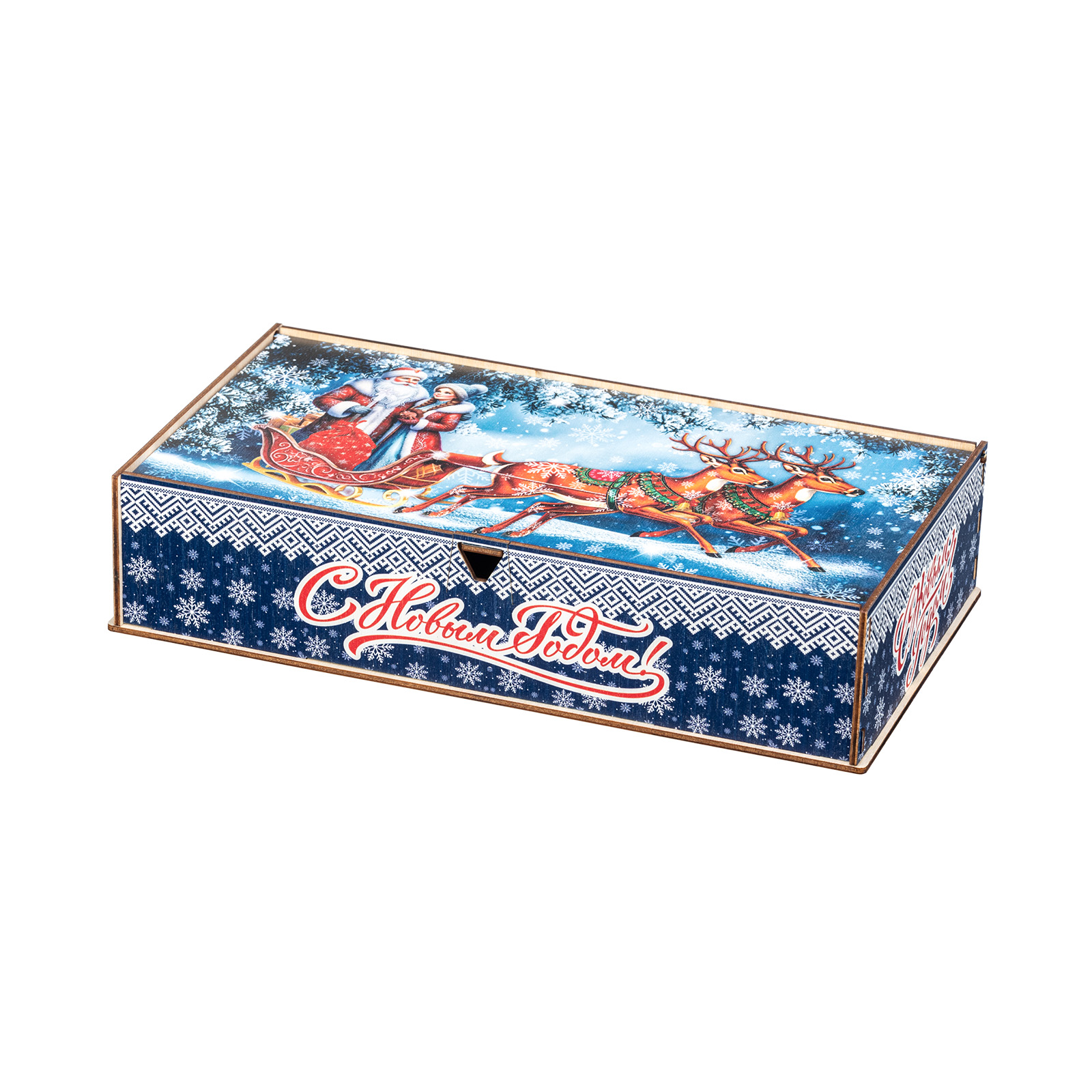 Интересный вариант новогоднего подарка – «Сказочное Путешествие». Он представлен в разделе Дерево. Отлично подойдет на подарок в 2026 году с символом Лошадь. Внутри такого презента находится кондитерский набор весом 1000 граммов.
